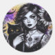 Pegatina Redonda Bruja gótica celestial y gato negro