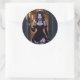Pegatina Redonda Bruja negra y púrpura con Halloween en Candelabra