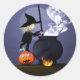 Pegatina Redonda Bruja y caldero de Halloween