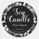 Este pegatina blanco y negro con ramas blancas, hojas y follaje, es una etiqueta de soja editable para alguien que fabrica sus productos artesanales a mano. Personalice este pegatina con sus propios datos personales o empresariales.