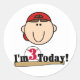 Pegatina Redonda Brunette Boy Béisbol camisetas de tercer cumpleaño