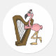 Pegatina Redonda BT- Flamingo rosa jugando al arpa