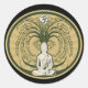 Este maravilloso diseño budista muestra a Siddhartha Gautama sentado bajo el Bodhi, donde alcanzó la iluminación y se convirtió en el Buda. Forma ovalada amplia con colores verde y marrón con un símbolo Om en la parte superior del árbol. ¡camisetas y regalos originales y pacíficos de Buda!