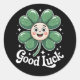 Pegatina Redonda Buena Suerte Cuatro Atracciones De Hojas