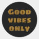 Pegatina Redonda Buenas vibraciones sólo purpurina dorado texto neg