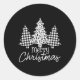 Pegatina Redonda Búfalo Blanco Y Negro Juegan Feliz Navidad
