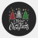 Pegatina Redonda Búfalo del árbol de Navidad Plantado Verde Blanco