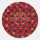 Pegatina Redonda Búfalo Rojo Jugado Copo de Nieve Feliz Navidad