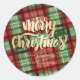 Pegatina Redonda Búfalo Verde Rojo Jugado Feliz Navidad