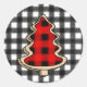 Pegatina Redonda Buffalo Plaid, Red Gingham Christmas Trees