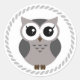 Pegatina Redonda búho personalizado gris dentro del anillo gris