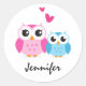 Pegatina Redonda Búho personalizado lindo con el nombre personaliza