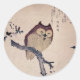Reproducción de una antigua huella japonesa de un búho "sonriente" adorable sentado en una rama. La imagen vintage se ha seleccionado cuidadosamente, se ha corregido el color, se ha limpiado, se ha retocado, se ha recortado y se ha preparado para imprimir con la máxima calidad.