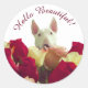 Pegatina Redonda Bull terrier con rosas - Hola hermosa