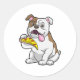 Pegatina Redonda Bulldog con pedazo de pizza