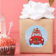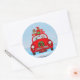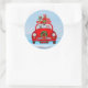 Pegatina Redonda Bulldog Francés En Coche Con Santa Claus