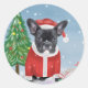Pegatina Redonda Bulldog francés en nieve con regalos de Navidades
