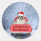 Pegatina Redonda Bulldog francés en nieve sentado en un camión de N