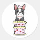 Pegatina Redonda Bulldog francés gracioso saltando de una torta