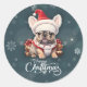 Pegatina Redonda Bulldog francés lindo Santa Hat Feliz Navidad
