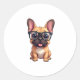 Pegatina Redonda Bulldog francés vistiendo gafas