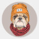 Este diseño presenta un retrato de bulldog en un gorra hipster y con bufanda de punto.