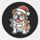 Pegatina Redonda Bulldog inglés envuelto en luces de Navidades
