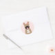 Pegatina Redonda Bulldoges franceses con flores sonrientes rosadas