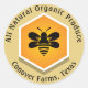 Haz tus propios pegatinas de productos orgánicos con tu nombre e información de contacto, con un icono de abeja miel en negro y naranja en forma de hexágono sobre un fondo de miel dorada
