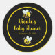 Pegatina Redonda Bumble Negro y Amarillo Tema de Abejas Baby Shower