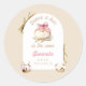Pegatina Redonda Bun In The Oven Pink Gingham Bow Baby Shower