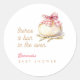 Pegatina Redonda Bun In The Oven Pink Gingham Bow Baby Shower