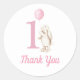 Pegatina Redonda Bunny & Balloon Pink Primer cumpleaños Gracias