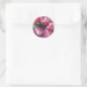 Pegatina Redonda Buquete de primavera floral de tulipanes rosados,