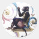 Pintura caprichosa de un mono que sopla burbujas, rodeado de torbellinos pastel de azul, rosa, amarillo y morado.