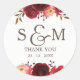 Pegatina Redonda Burgundy Marsala Red Roses Floral Gracias