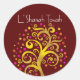 Pegatina Redonda Burgundy Rosh Hashanah Relieve metalizado dorado á