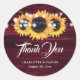 Pegatina Redonda Burgundy Rustic Wood Sunflower Wedding Thank You
