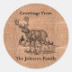 ¿Buscando un pegatina con temática rústica de "Saludos desde"? Este pegatina está diseñado con un fondo burlap falso y un ilustracion de un hermoso bulto parado en un campo. El texto "Saludos desde" está colocado encima de la imagen del dólar. El nombre de su familia se establece a continuación. El texto negro utiliza fuentes modernas que se pueden cambiar utilizando las herramientas de personalización en pantalla. La belleza de su vida salvaje se refleja en esta detallada imagen.