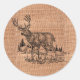 ¿Buscando un pegatina rústico con un tema de vida silvestre? Este pegatina está diseñado con un fondo burlap falso y un ilustracion de un hermoso bulto parado en un campo. La belleza de la fauna capturada en una imagen detallada.