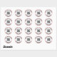 Puede reemplazar la imagen mostrada por el archivo para el código QR. Hay dos líneas de texto en negro que puede editar para mostrar un mensaje personalizado. Estos elegantes pegatinas tienen texto negro en un círculo blanco. La mirada metalizado rosa y cepillada en el borde es una representación artística. (El producto no tiene un borde de Relieve metalizado.)