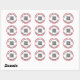 Una imagen de pantalla está en el medio del pegatina. Puede reemplazarlo con su código QR. Hay dos líneas de texto en negro que puede editar para mostrar un mensaje personalizado. Estos pegatinas tienen texto negro en un círculo blanco. El pegatina tiene un borde rojo.