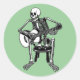 Un intérprete de guitarra con esqueleto sentado. B/W, dibujo con lápiz y tinta en camisetas, sudores, tarjetas, artículos de regalo.