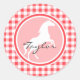 Pegatina Redonda Caballo Blanco; Gingham Blanco y Rojo