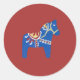 la imagen de este pegatina es de un caballo de madera diseñado y pintado por Julia Morrill