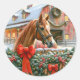 Pegatina Redonda Caballo marrón, arcos y barbas Navidades rusos