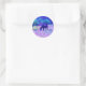 Pegatina Redonda Caballo negro morado en campo arco iris