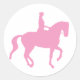 Pegatina Redonda Caballo y jinete con cubierta de piaffe (rosa)