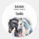 Pegatina Redonda Caballos blancos y negros en el negocio de las vel