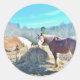Pegatina Redonda Caballos de proyecto rescatados que comen el heno